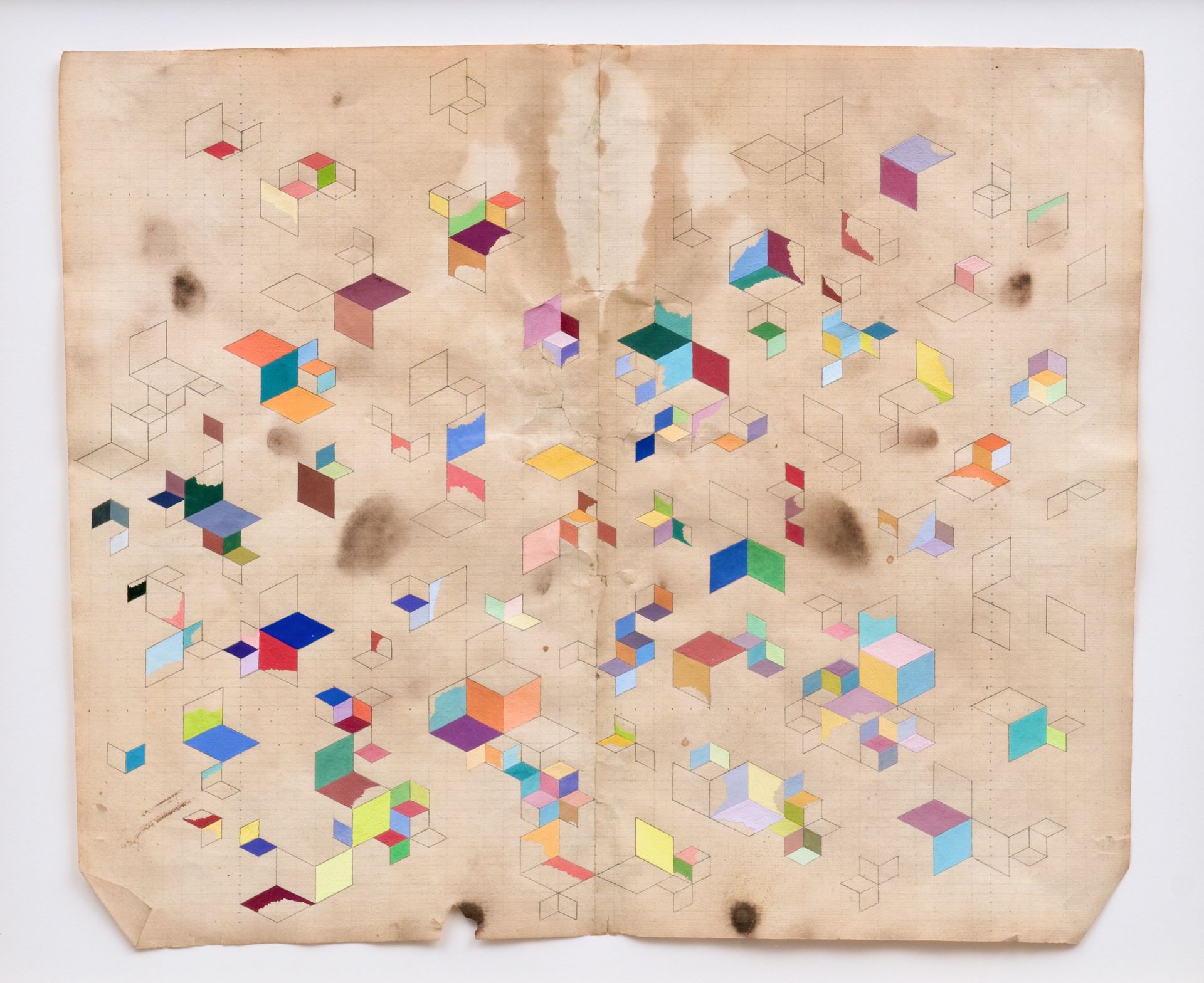 Navarra’s work unfolds across two intertwined platforms: drawing on found papers, many more than a century old, and the making of vessels in clay. Both practices are acts of mark-making that respond to surfaces already imbued with history. In his drawings, aged documents—creased, stamped, stained, and written upon—become palimpsests. Onto these fragile grounds, Navarra layers his own gestures, engaging in a dialogue between anonymous historical traces and contemporary presence. Each page becomes a meditation on how we encounter our collective past, and how choices to erase, amplify, or transform shape what we bring into the present.