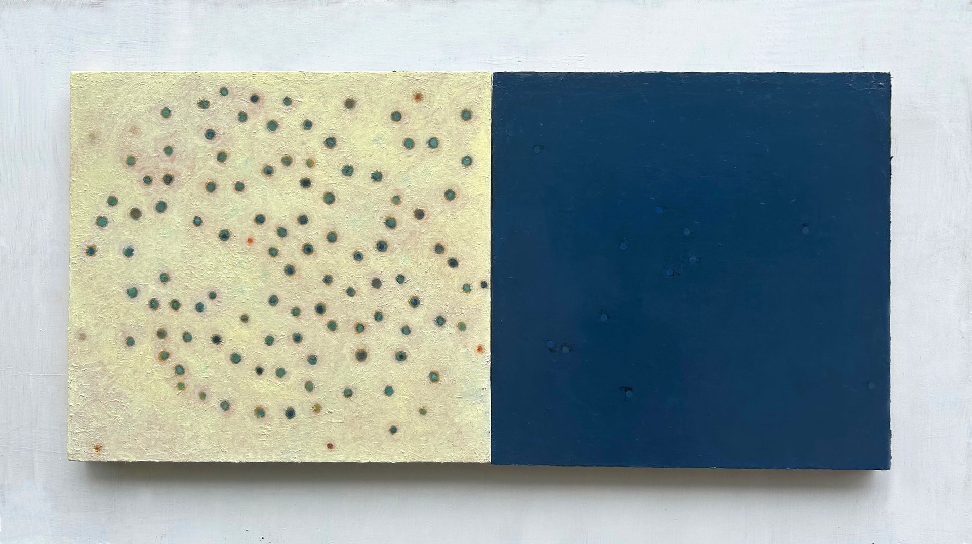 Not far from feelings, wonders, dreams, and memories, my paintings are a subjective arena in which to explore my relationship to history and the world. Not content with my paintings hanging passively on the wall, I am more interested in playing with the viewer’s spatial awareness. Often using diptychs and multi-panel configurations to achieve this aim, I am interested in the concept of part to whole. This format allows me to suggest mythical and formal dualities and seek to reveal unexpected relationships that impart a sense of tension, control, and release.