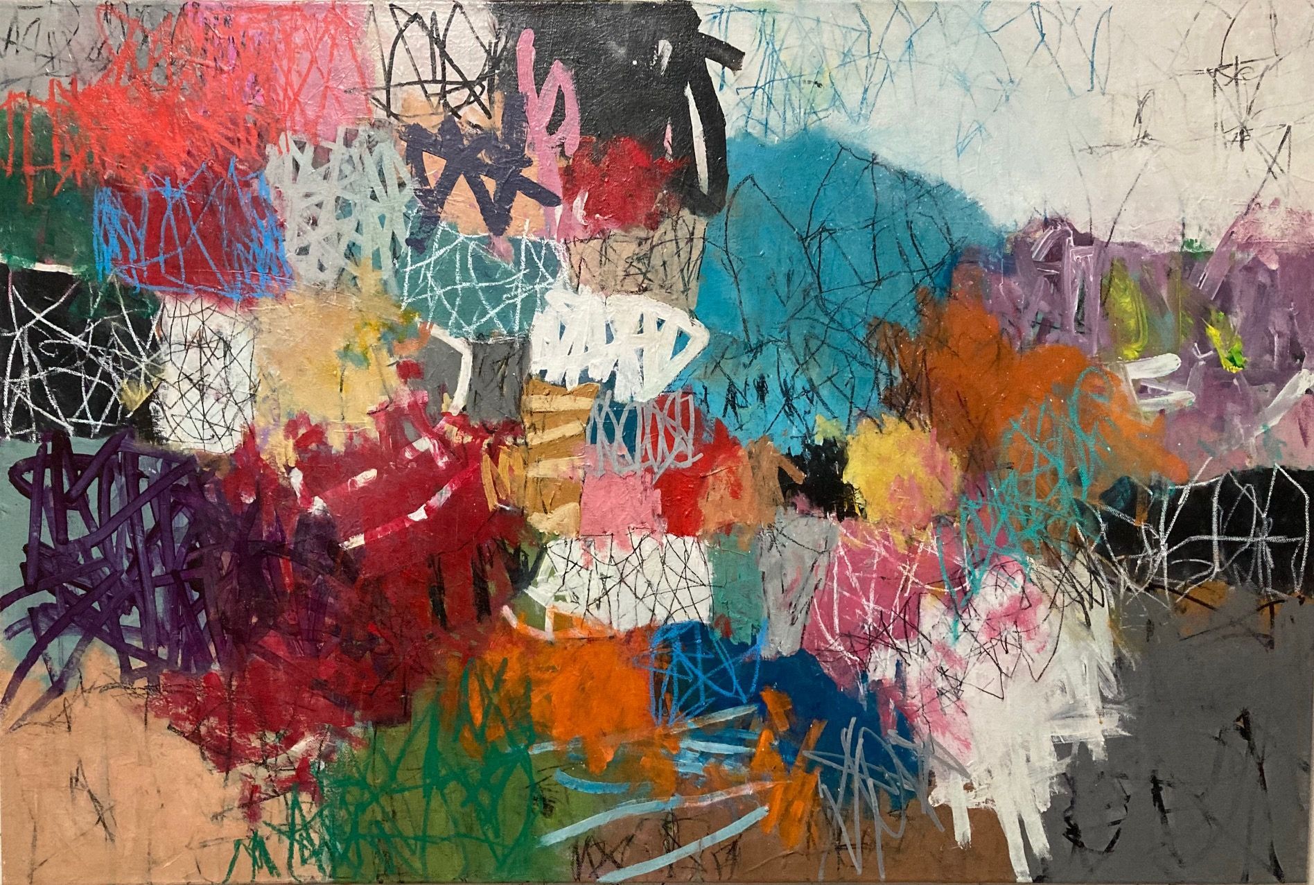 “My work is nonrepresentational and is all about the interplay between color, form, line, and texture. I want the audience to integrate their own personal narrative and draw their own conclusions from the paintings. The viewing experience should be open ended, expansive, and free from preconceived notions.