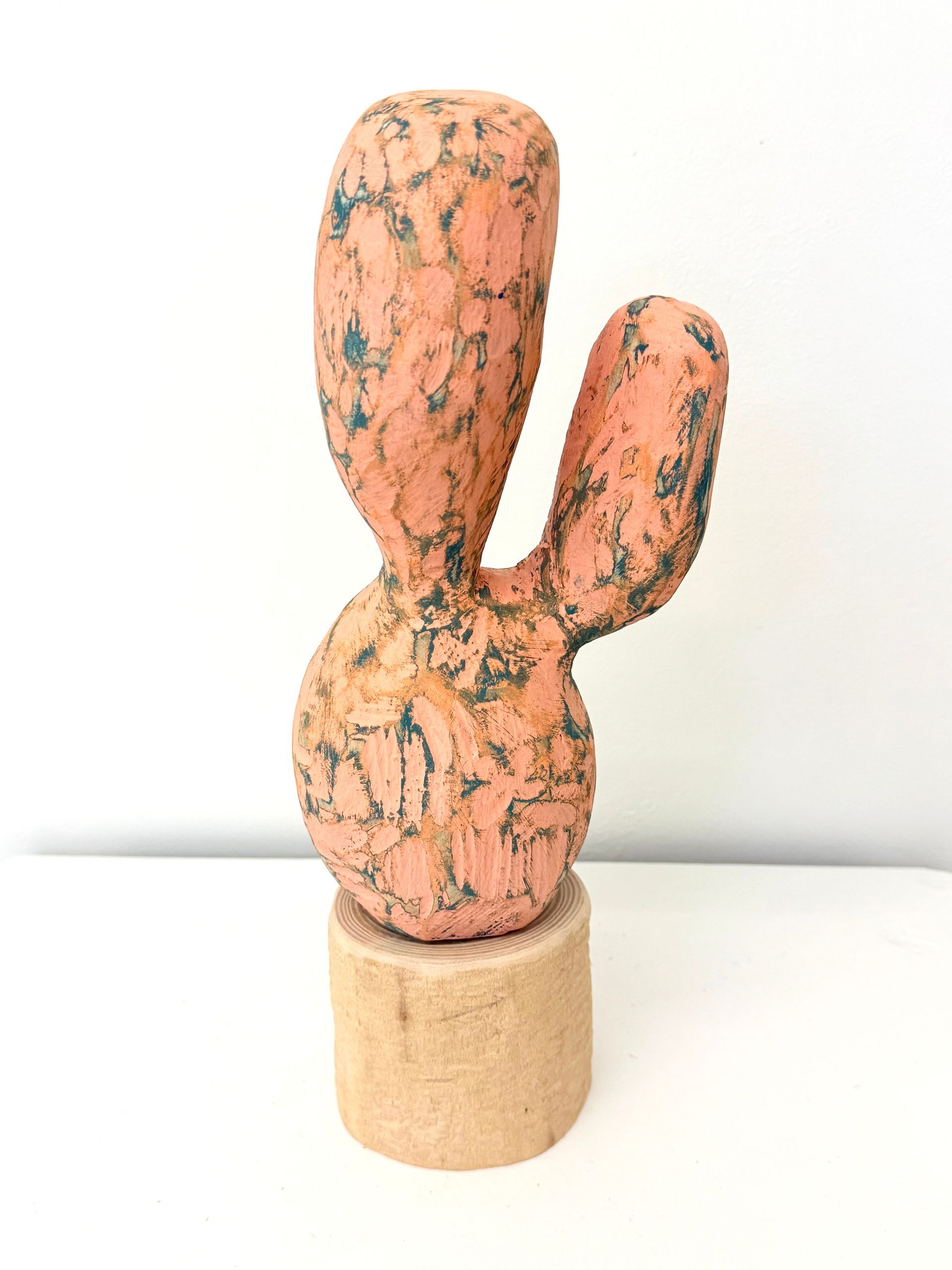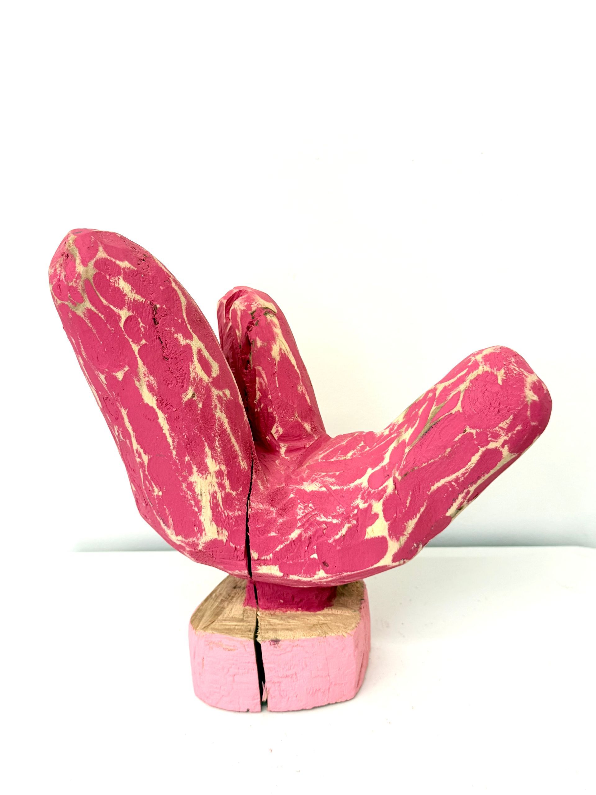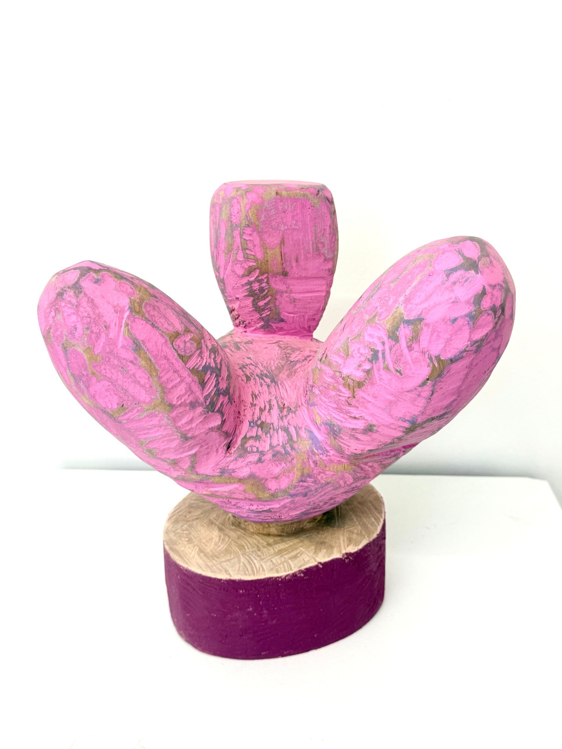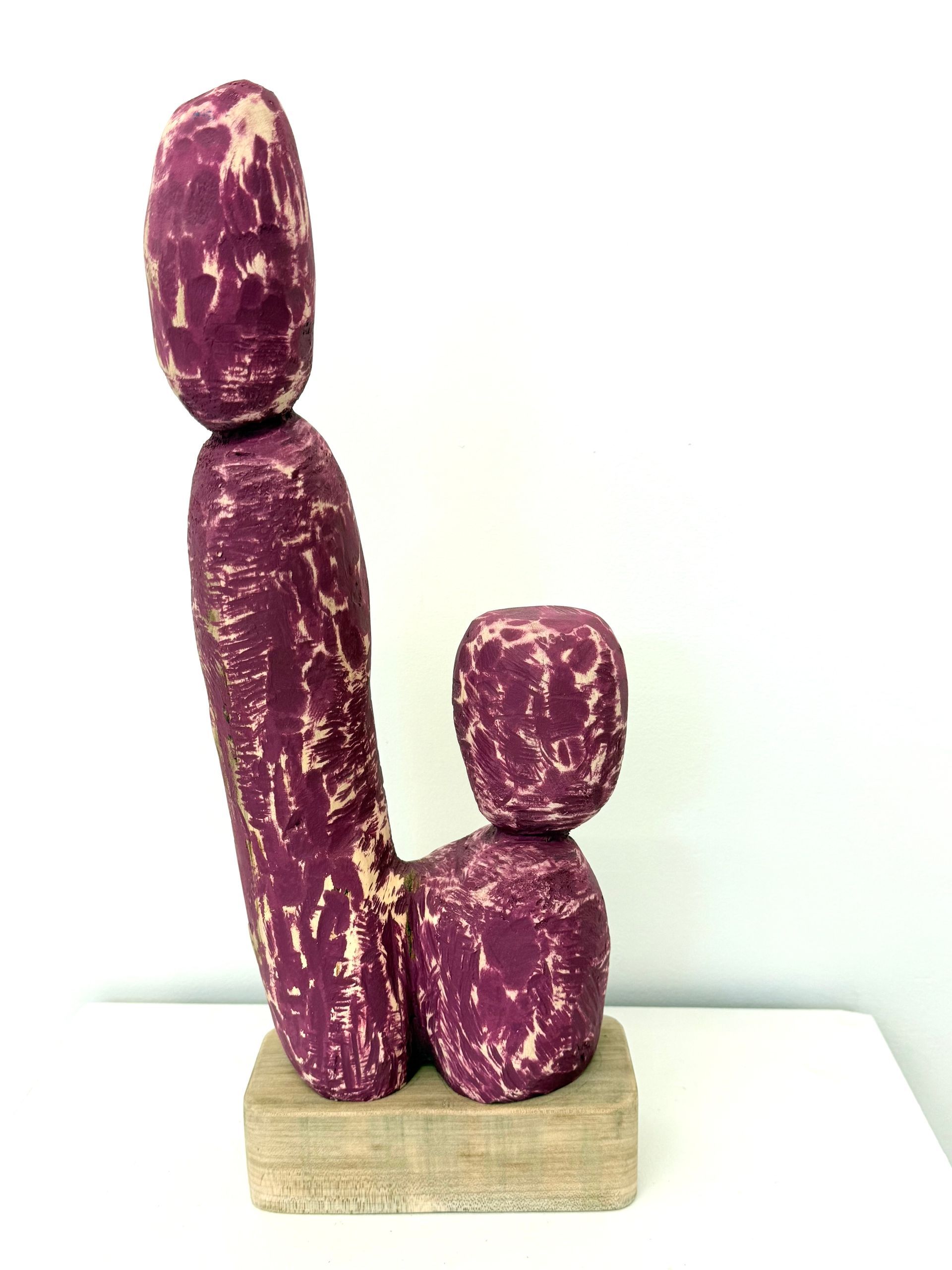 I’ve always liked to work with wood I’ve found—often pieces discarded by the roadside. There’s something compelling about their history: weathered, unpolished, marked by time and neglect. Their lack of preciousness invites a kind of freedom. I begin by reading the shape of the wood, allowing its irregularities to suggest a direction, carve into these cues, respond to them, sometimes resist them. I leave visible saw marks, scuffs, chalk outlines, layers of paint, allowing the surface to retain evidence of its making where color is an equal part of the structure.”